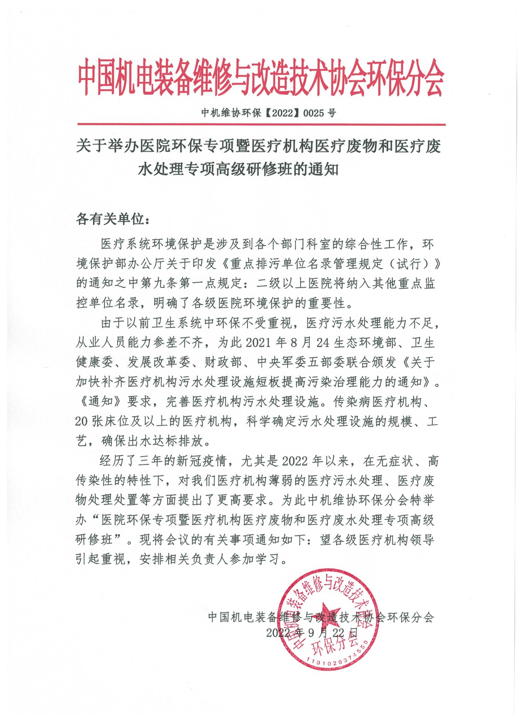關(guān)于舉辦醫(yī)院環(huán)保專項(xiàng)暨醫(yī)療機(jī)構(gòu)醫(yī)療廢物和醫(yī)療廢水處理專項(xiàng)高級研修班的通知!